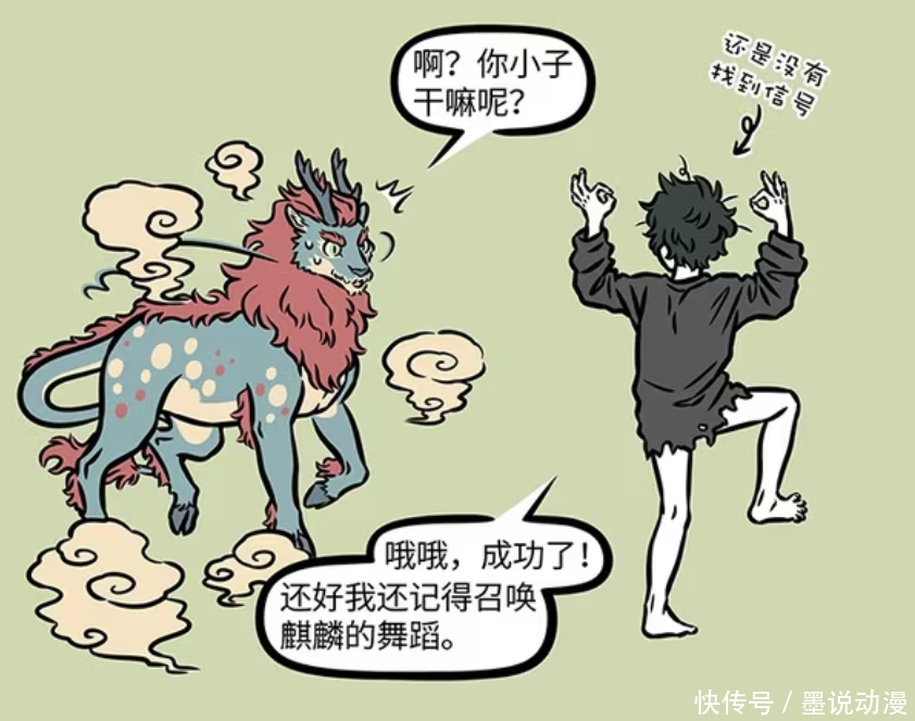 《非东谈主哉》漫画版中,白泽遭遇馋嘴之后,体魄被吃掉一部分。这样一来,白泽体魄就变小了许多,神力也被馋嘴吃掉了泰半。白泽失去部分牵记之后,发誓要找馋嘴算账。因为深山莫得信号,白泽只可跳麒麟召唤舞,最终召唤出来麒麟。