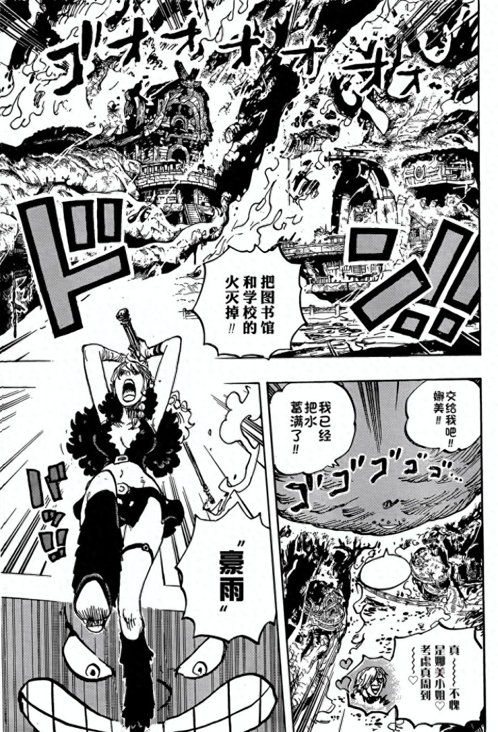 凉帽一伙仍是得知了孩子被救走,娜好意思和罗宾等东说念主来到学校隔壁,他们需要匡助巨东说念主族战士扑灭学校和藏书楼的大火。莉莉丝和波妮,弗兰奇等东说念主也赶过来,莉莉丝从箱子里拿出一件火器,这个火器便是全能疏通器。