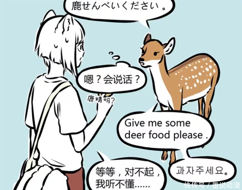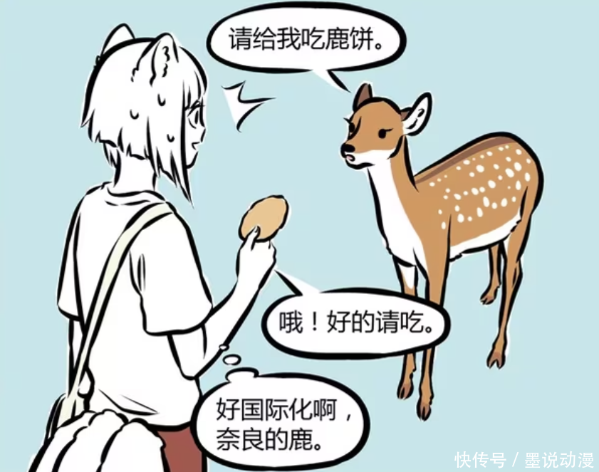 更让东说念主没思到的是,这只奈良鹿简直会说中语,让九月请它吃鹿饼。这样海外化的鹿,照旧比拟有数。九月知说念奈良鹿的事理后,也请了它吃鹿饼。这时间就不得不思起,那一群峨眉山的老表。