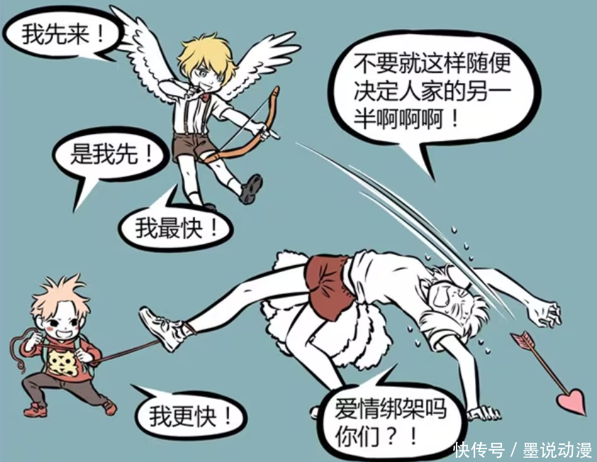 无论靠不靠谱,媒妁见到丘比特就会自沟通词然出现敌意。媒妁合计我方的地皮就该他作念主,然而丘比特根柢不看重媒妁会若何说。唯有是这个宇宙上的爱情,丘比特都思管。这样一来,媒妁和丘比特也就成了死雠敌。