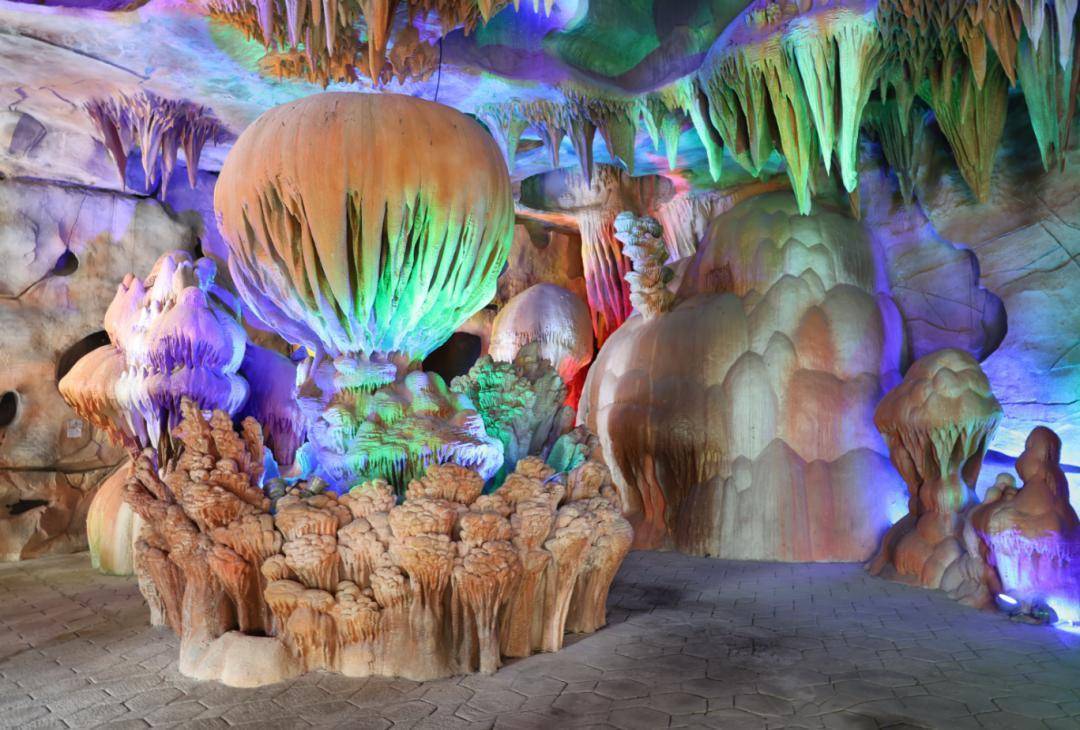 在距离关岭县城11公里的国度4A级旅游景区——关岭九仙旅游景区,在本年春节长假以“亿年溶洞奇不雅+多元新春盛宴”为元素,相同迎来了客流小岑岭。手脚家庭游、亲子游的热点遴荐,景区内规律井然,中枢景不雅九仙洞天溶洞内,千姿百态的钟乳石在七彩灯光照射下如梦似幻。而全长3.9公里的“王牌技俩”洞中飘零更是东谈主气爆棚,59米落差、11处险弯带来的刺激/p>