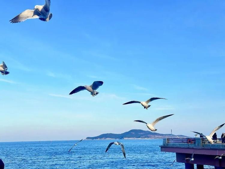 立春已过,海风褪去了凛凛,澄澈的大海泛着细碎金光,成群海鸥振翅而来,为海岸添满欢腾期望。