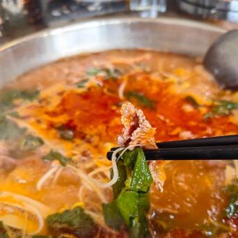 偶遇的酸汤牛肉店很厚味买球网址,加了薄荷的版块,又酸又辣又凉快。