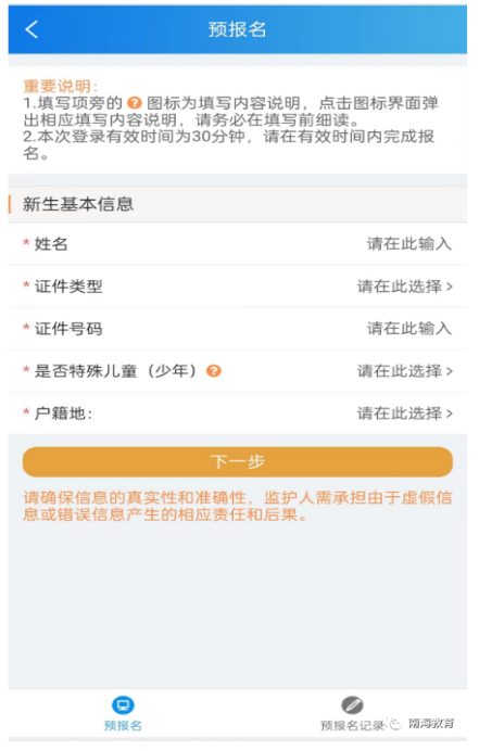 4.预告名填报的家长干系电话必须为广东省内手机号码(省外手机号码不可用)。