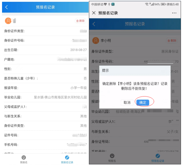 5.预告名限期内,家长如发现填写错漏不错删除重报。