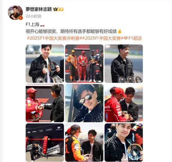 知名艺东说念主林志颖更新了外交平台,配文:F1上海,很抖擞大要受奖,期待通盘选手都大要有好收货!