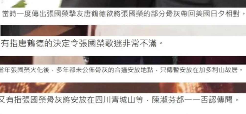 不虞葬礼落下帷幕后,张国荣骨灰安放一事却成为了勤奋,出于悲哀的心情,唐鹤德将哥哥的骨灰保留了下来,并在自家豪宅中存放,这一放就是22年之久。