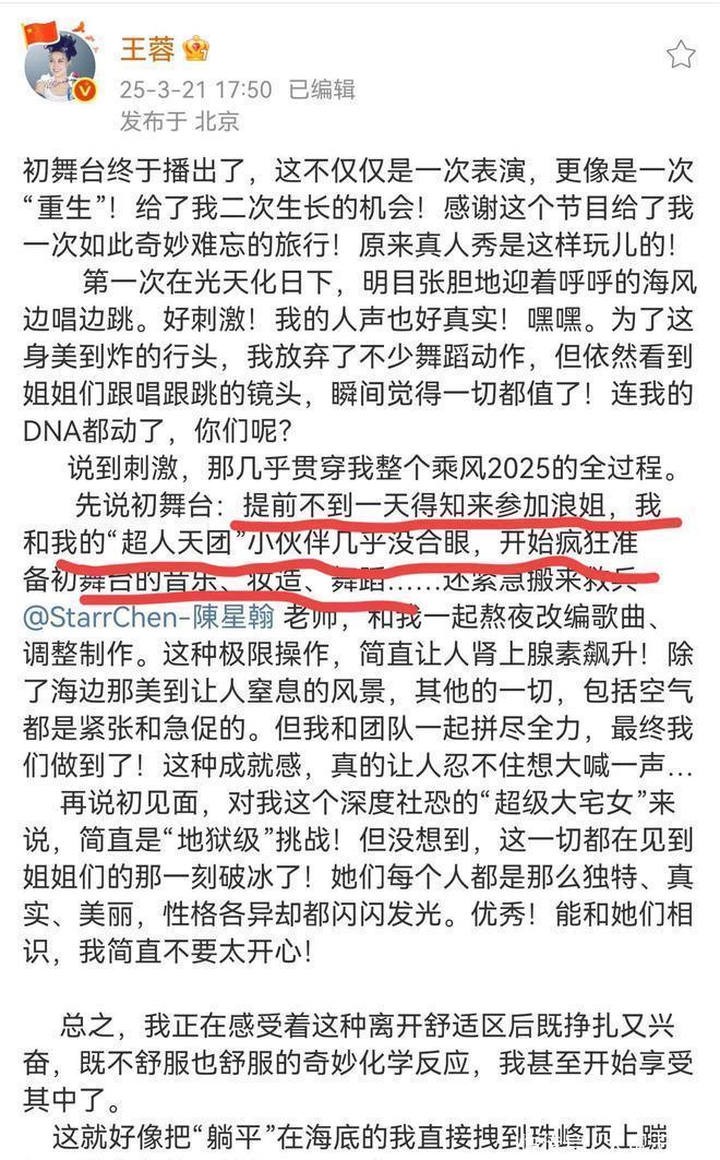 包括此次王蓉上浪姐其实是救场行径。蓝本节目组看不上她,反而是王蓉一直求着节目组给契机。亦然她命运好,短暂有嘉宾在这届浪姐开拍前跑路,王蓉才捡漏登场。
