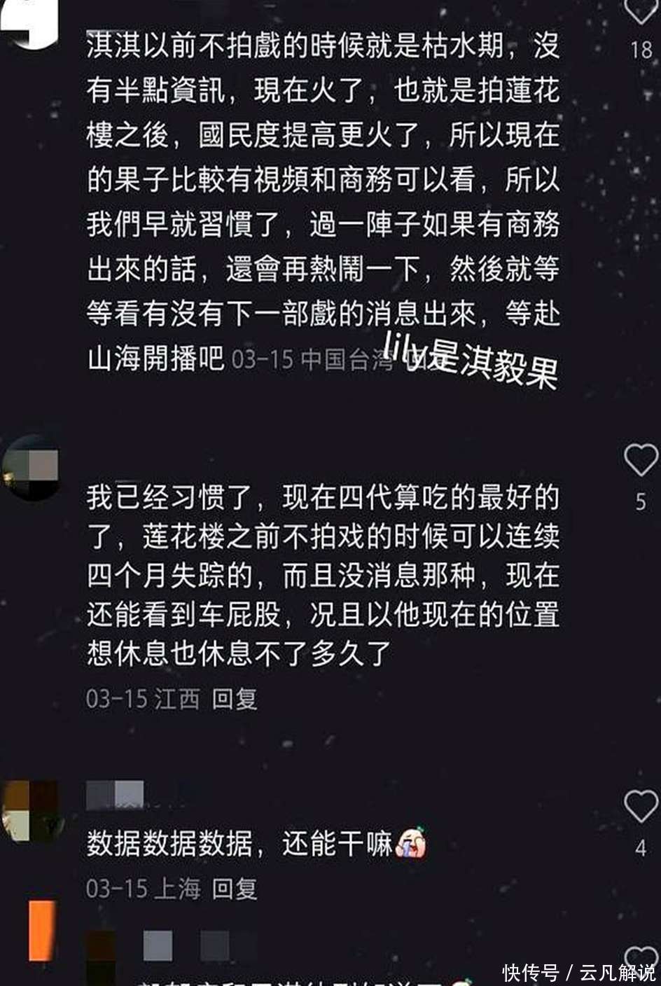 在拍摄《莲花楼》之后,成毅的营业频率显着提高。过去怕签名被骗使命室晒明信片,当前贸易价值上升代言不断。而且,成毅的粉丝相配千里着沉稳追星,不吵不闹寡言扶植作品,他们和成毅的联系如杵臼之交淡如水,相互信任尊重扶植。