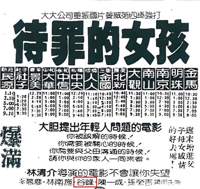 谷峰插足影视界,先是与邵氏电影签约,在《梁山伯与祝英台》《地面儿女》等邵氏电影中跑破裂。
