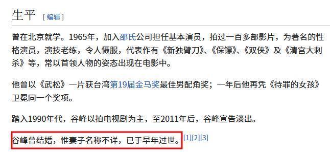 值得一提的是,因为谷峰在脸色上很低调,以致于好多东谈主觉得他一辈子莫得结过婚,如今他逝世,好多自媒体作家纷纷说他一世单身。