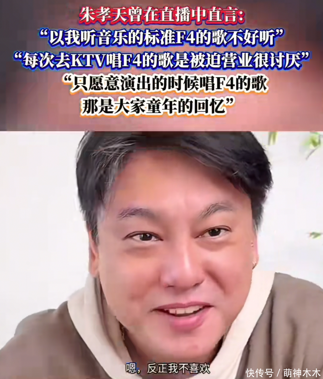 直播时也会给F4厚爱演唱会造势,固然嘴上说着只把其他三东说念主当共事,还吐槽不心爱F4的歌,但看上去也曾很积极地在促进合体演唱会的协作,还自曝去试唱F4新歌。没思到,临了朱孝天会因此被踢出局。
