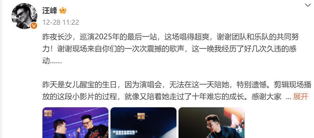那天,汪峰适值在长沙开“信服将来”巡演,忙得不亦乐乎。