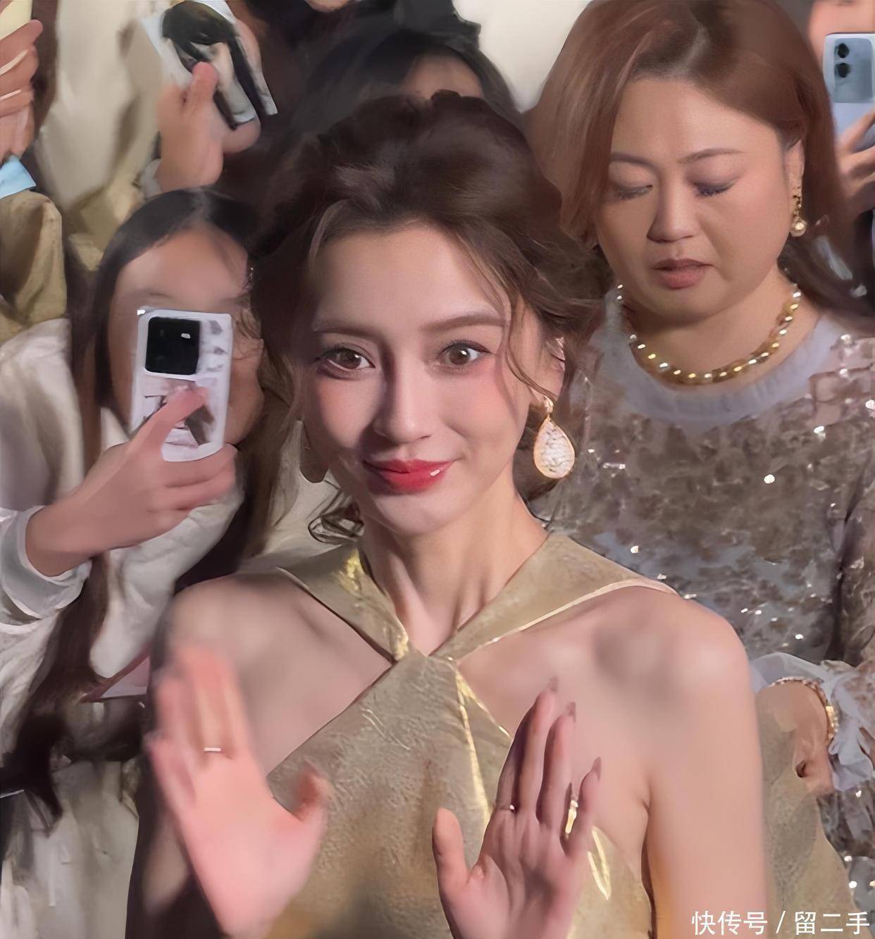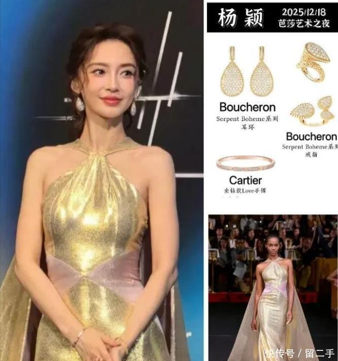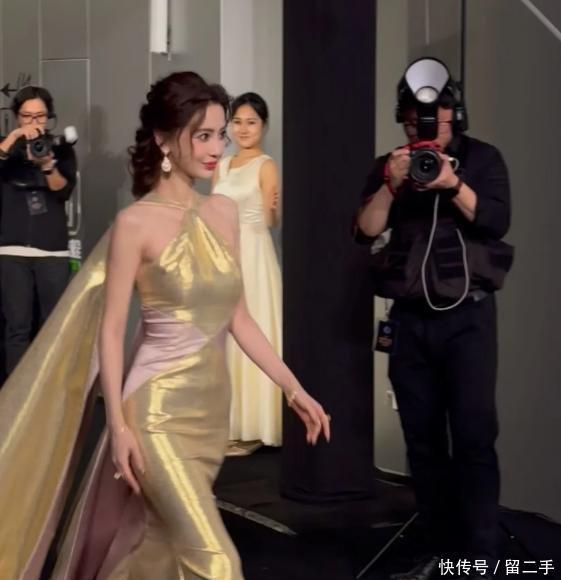 当杨颖身着金色顺服亮相那一刻。