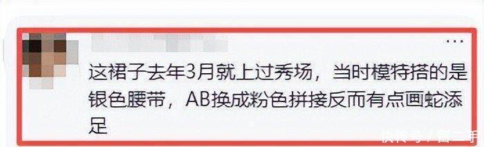 “这条裙子旧年三月份就在秀场上展示过了,当时辰模特配的是银色腰带,AB换成粉色的拼接狡计,反倒有点冠上加冠了。”