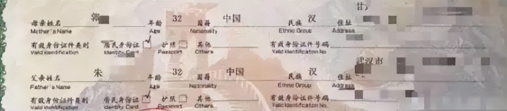 一张据称为孩子出身讲授的图片,天然关节信息被打码,但蒙眬能看到父母姓氏。