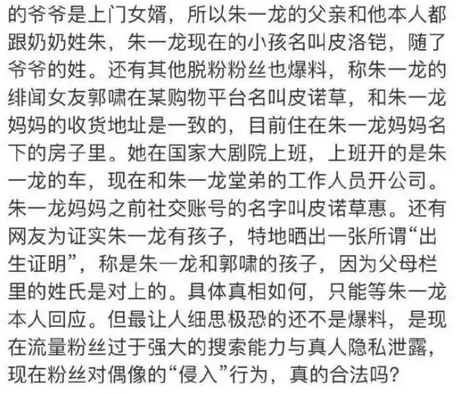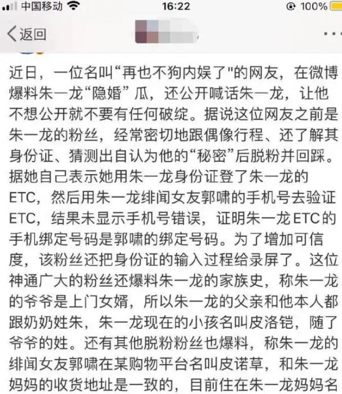 直指朱一龙早已隐婚生子,多年来一直在诈欺粉丝。
