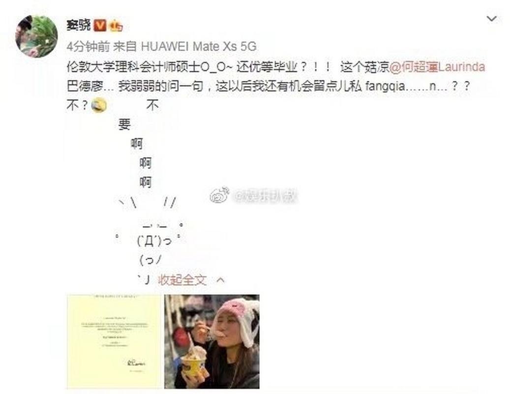 也曾何猷君还坦言家中有东说念主想要买学历,何超莲知说念后顺利将他取关了。