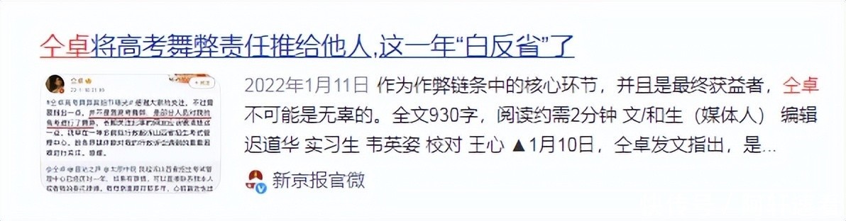 尊府参考:2022-01-11新京报官徽——仝卓将高考作弊职守推给他东说念主,这一年“白反省”了