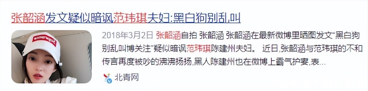 尊府参考:2018-03-02北青网——张韶涵发文疑似暗讽范玮琪妻子:诟谇狗别乱叫
