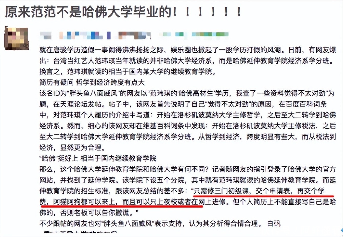 还说考哈弗很难、很回绝易之类的话,但是经由网友们的查询才发现,范玮琪口中所说的哈佛大学毕业根柢就不是真的。