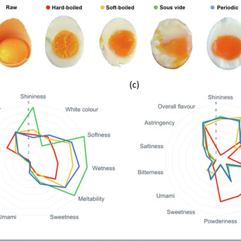来望望原文————“在本文中,咱们发现通过在能量传输问题中使用周期性边界条目,无需分离就能在两种温度下差异煮蛋清和蛋黄。通过数学建模及后续模拟,咱们得以遐想出一种新颖的烹调门径,即周期性烹调。通过多种表征技艺,包括感官分析、质量剖面分析和傅里叶变换红外光谱,将这种新门径与传统煮鸡蛋法式进行对比,说明了该新门径在烹调经由以及卵白质变性方面的相反。这种门径不仅优化了鸡蛋的质量和养分要素,况兼在改造烹调愚弄和材料料理方面也颇具后劲。”