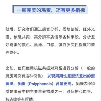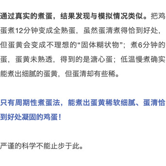 试试这么去煮鸡蛋,你会追念感谢我——鸡蛋先放入100℃滚水煮两分钟,再放入30℃水里煮两分钟,重迭以上才智,冷热瓜代8次,共烹调32分钟。如斯,你就能取得#全国上最完整的煮鸡蛋# 。