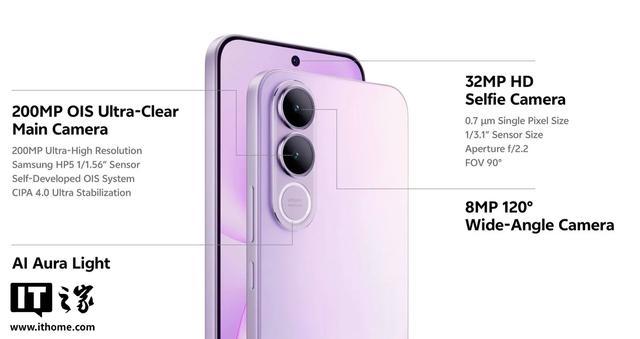 该机举座厚度 7.59 毫米,分量 200 克,正面配备一块 2800x1260 分手率 120Hz AMOLED 面板,HDR 峰值亮度 1900 尼特,匹配 32MP 自拍录像头,后置 200MP 主摄和 8MP 超广角。