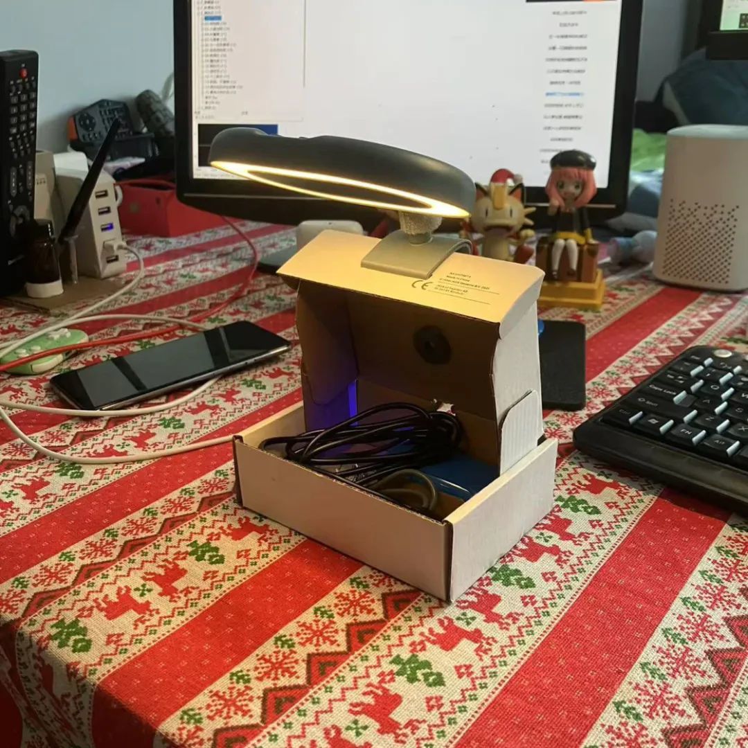 于是我很快就应用手边的材料为它制作了一个底座,然后在想考了多种供电决策后,最终采选在某宝上定制一块电板组来为它供电。完成后的最终制品长这样: